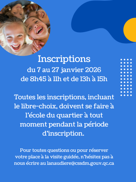 Vous désirez visiter l’école? Communiquer directement avec la direction au bertrandnat@csdm.qc.ca pour réserver votre place. La visite de l’école sera possible le 15 janvier à 17h.
